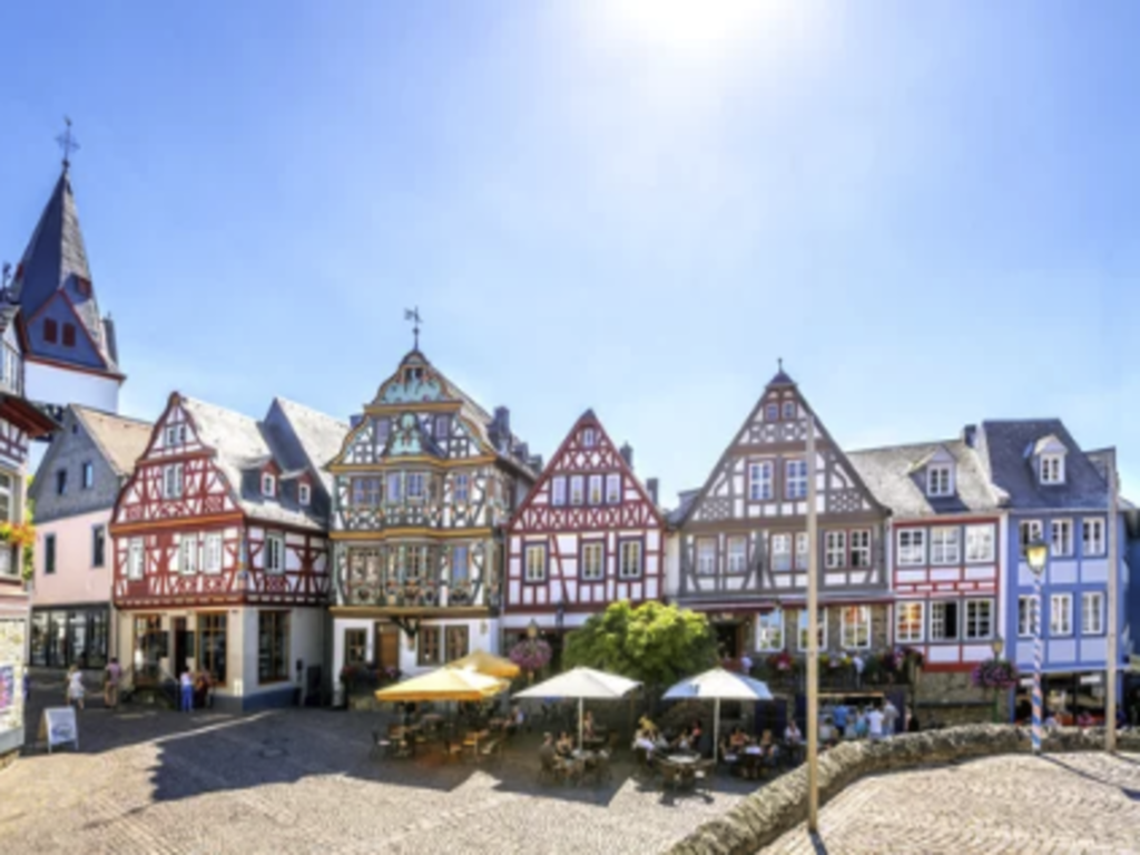 Nuestro siguiente punto es la Köing Adolf Platz, la plaza principal de Idstein, un lugar de encuentro y comercio desde la Edad Media. Desde aquí, se pueden ver algunos de los edificios más antiguos de la ciudad, incluyendo residencias y tiendas que mantienen su aspecto original.