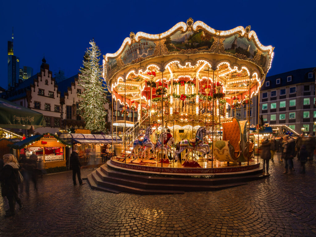 Iniciaremos nuestro recorrido en el corazón histórico de Frankfurt, la Plaza de Römer. Aquí, el mercado central despliega su encanto con cientos de puestos adornados con luces titilantes y decoraciones festivas. Déjate cautivar por la artesanía local, los regalos únicos y el aroma embriagador de las delicias culinarias de temporada.